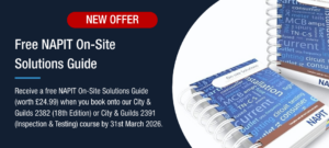 To help electricians and inspectors stay compliant and confident, we’re offering a free copy of the NAPIT On-Site Solutions Guide (worth £24.99) when you book onto one of our core electrical courses.